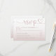 Esta sencilla y elegante tarjeta RSVP cuenta con un suave degradado rosa, combinado con una tipografía moderna de estilo rosa dorado y un delicado detalle cardíaco para un acabado romántico. Esta tarjeta RSVP, diseñada para complementar los temas de la moda, la femineidad y el boda romántico, combina el encanto atemporal con el estilo contemporáneo. Perfecta para bodas de primavera, celebraciones de verano, o paletas de color color color color color color color rosa y dorado, es ideal para novias que planean un boda minimalista, moderno o romántico.