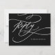 Esta tarjeta postal de RSVP de opción de menú imprimible de color negro oscuro romántico es perfecta para una boda sencilla. El diseño clásico moderno cuenta con giros elegantes y florituras caprichosas con tipografía elegante y manuscrita. Esta tarjeta postal de respuesta de boda convenientemente pregunta a los invitados qué comida les gustaría en su recepción.