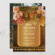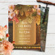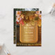 Una romántica carta Save the Date con una temática vitivinícola, con uvas y rosas color melocotón sobre un artístico de oro con fondo de barril de vino y luces de cuerda festivas. Si no quieres usar tu propia foto en la parte posterior, puedes borrar la foto de la plantilla y revelar una imagen de rosas en un fondo de barril de vino. Hermoso para un boda o aniversario de viñedos o bodegas.