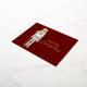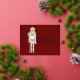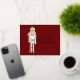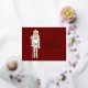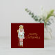 Divertida tarjeta postal navideña que presenta un rompe nueces de Navidad en combinación de rosa, verde menta y dorado sobre fondo rojo oscuro. Saludo de "Feliz Navidad" de hoja de metal real personalizable