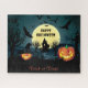 Celebración nocturna de Halloween, Carnaval, Festival, fiesta infantil - "Treat or Trick" MAGIC Deportes nocturnos de Halloween, Juguetes y juegos > Juguetes y juegos > Puzzles - Paisaje de Halloween Fantasy, Calabaza de Halloween, Murciélago, gato negro, Spider Web, Logo de gorra de brujas mágicas de Halloween, Casa, Luna y Cielo, Halloween hecho a mano, personalizado. Halloween Ilustracion de símbolos de la noche mágica con opción de cambio de texto Personalizar. Personalizarlos añadiendo Fecha, Nombre de la escuela, Nombre de la familia o texto de deseos.