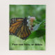 rompecabezas de bonito con el cierre de la mariposa monarca encaramada en delicadas flores blancas rosadas con grandes hojas verdes y un fondo verde borroso. La mariposa monarca es tan bonito y siempre un espectáculo de bienvenida con sus alas naranja y negra y puntos blancos. Personalízalo con el texto o elimine el campo del cuadro de texto. Si elige un tamaño de rompecabezas diferente, puede que tenga que hacer clic en personalizar y aumentar o disminuir el tamaño de la imagen o del tipo de letra del texto para llenar los bordes del rompecabezas. Rompecabezas divertidos para cualquiera que ame las mariposas, las flores y la naturaleza. Reúne una y otra vez, o encuéntralo. Fotografía original © TamiraZDesigns.