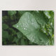 Rompecabezas con hojas verdes y gotas de lluvia