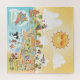 Un espectacular personalizado del sur de California, que exhibe Los Ángeles, Anaheim, San Diego y muchas otras ciudades, además de la mayoría de las playas. Esta escena brillante y encantadora lo tiene todo: un surfista cuelga diez veces mientras una sirena se sienta en una roca, una ballena asesina salta del agua, una pareja de playa musculosa flex para impresionar, animales zoológicos esperan a los turistas y un toro se choca con un toro luchador, todo bajo el cálido sol de California brillando sobre todo.