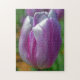 Este bonito rompecabezas de flores presenta mi fotografía original de primer plano de un tulipán de tonos púrpuras.