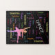 A tu bailarina le encantará este rompecabezas de baile verdaderamente exclusivo con su nombre impreso en una variedad de colores y fuentes.
