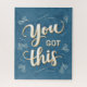 Este rompecabezas de citas motivacionales, con el inspirador dicho 'You Got This' en color azul con el guion blanco grabado en arte, lo hace un gran regalo para alguien que empieza algo nuevo o desafiante. Este ilustracion único añade un toque artístico que convierte el rompecabezas en una pieza de arte, ideal para los amantes del rompecabezas. Obra original de Ana Garza/Kardz Studio. Si tiene alguna pregunta, por favor contacte conmigo a través de la charla de Zazzle.