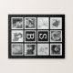 ¡Cree su muy poseen, único y uno de un rompecabezas de gran tamaño bueno usando sus propias fotos o ilustraciones! Diseñado especialmente para las fotos del instagram, pero cualquier imagen será cabido automáticamente dentro de los marcos blancos simples y arreglado en un modelo de rejilla. Utilice las imágenes formadas cuadrado para los mejores resultados. Los cuadrados de centro se pueden personalizar con sus primeras y pasadas iniciales. Elija cualquier color para el fondo, mostrado negro.