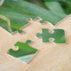 Este impresionante rompecabezas presenta una detallada foto macro de un pequeño saltamontes verde con marcas marrones en el suelo. En la fotografía se puede ver el detalle de las patas unidas, antenas largas y ojos negros y dorados del saltamontes.