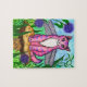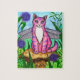 Rompecabezas de hadas del arte de la fantasía de la seta del gato de la libélula