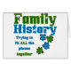 'Historia familiar, tratando de encajar todas las piezas' - y el texto está escrito en piezas de rompecabezas con algunas piezas faltantes en las palabras y cayendo en el diseño. Diseño inteligente para cualquiera que trabaje con el árbol familiar y las raíces de sus ancestros.