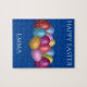 Rompecabezas de huevos brillantes de Pascua. Nombre del niño personalizado.