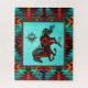 ¡Disfruta este singular rompecabezas de caballo suroeste "Uno de los tipos"! El Silueta de Caballo Galopante del Suroeste, de fondo turquesa....Rodeado por un borde suroeste en turquesa, Naranja y negro oscuro! Este es un Diseño de Arte Gráfico Original creado por el artista Kerry Miller.