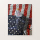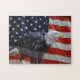 Fotografía patriótica del rompecabezas de la bandera americana con Eagle calvo americano.