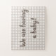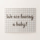 Taupe lindo beige gingham "Estamos teniendo un bebé" Invitación de embarazo Rompecabezas para marido, familia, amigos