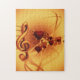 Un bello rompecabezas con un diseño dorado de notas musicales y corazones. Este impresionante rompecabezas sería un gran regalo para los amantes de la música y el rompecabezas.
