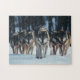 Rompecabezas del juego mostrado con una foto impresa de un grupo de lobos en el Parque Yellowstone. Personalizar este artículo o compra tal cual. Imagen de stock