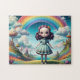 'Sueños de arcoiris' Este rompecabezas es una escena caprichosa de un joven chica en un paisaje temático de arcoiris.