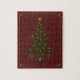 Este elegante diseño cuenta con un árbol de Navidad acolchado con adornos de color joya y se presenta en el interior, todo rodeado por un delicado borde de fibra de oro con joyas en las esquinas.