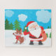Un adorable diseño de Santa Claus y un pequeño zorro recorriendo el camino... ¿se rompió el trineo?