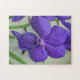 Fotografía de cerca de hermosas orquídeas de vanda moradas impresas en un rompecabezas.