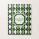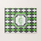 Argyle va retro de 8 bits con este esquema de color verde, gris, blanco y negro que remonta a los juegos de arcade de la vieja escuela. Personalizar el monograma con las iniciales adecuadas para un toque personalizado.