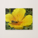 Este asombroso rompecabezas presenta una detallada fotografía de una magnífica mosca a rayas amarillas y negras arrastrándose por una amapola californiana amarilla buscando néctar.
