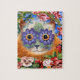 Este rompecabezas hermoso de la foto con lata muestra el mundo maravilloso, caprichoso del artista inglés famoso Louis Wain del gato y sería el regalo perfecto para los amantes del gato y los dueños del gato. Un compuesto de dos de las pinturas famosas de Wains, el rompecabezas ofrece una pintura de la cara de un gato hermoso, colorido con las pestañas formadas flor púrpura y de una capa enorme del jengibre contra un fondo de las flores del verano. ¿Podía éste ser el primer gato del hippy del flower power? El rompecabezas con lata sería el regalo perfecto para los admiradores del arte del gato del vintage.