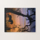 Un caballo de bonito y un árbol con una valla campestre en el amanecer de color suroeste, este es un divertido y colorido rompecabezas.