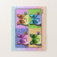 Cuatro gatos coloridos del estilo del arte pop para el amante felino de gatitos, las patas del gatito y las barbas del amor. Capítulo lo y cuelgúelo para arriba cuando está terminado.