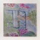 Lo mejor de una tarde calurosa de verano es pasear por el jardín y relajarse en el banco. En esta encantadora acuarela, el banco azul se encuentra en el césped rodeado de flores de bonito, lavanda y árboles. Sienta el sol en la cara al elegir este suave y pintoresco banco de jardín de verano pastel.
