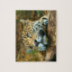 Rompecabezas del juego mostrado con una impresión de la foto de un leopardo hermoso. Modifique este artículo para requisitos particulares o cómprelo como es. Almacene la imagen