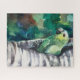 Loro verde saliendo de su hoyo, pintura acuarela, rompecabezas