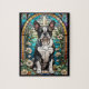 Gran rompecabezas con un perro del Boston Terrier blanco y negro hecho artísticamente en un modo falso de vidriera. Perfecto para los amantes de los perros, propietarios de mascotas.