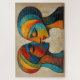 Pintura abstracta de una pareja con rostros estilizados de colores vivos. Arte contemporáneo con composición texturada y dinámica.