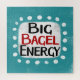 "Big Bagel Energy" es un lindo diseño de texto en azul con texto en negro y rojo, junto con una forma de acento blanco y puntos caprichosos de textura blanca que lo rodean.