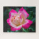Un bonito rosa de té híbrido con puntas pétalas rosas brillantes y un centro de color melocotón, un hermoso rompecabezas para los amantes de las rosas y las flores en general.