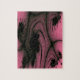 Este asombroso rompecabezas está cubierto por hermosos giros negros que se extienden como dedos de la oscuridad hasta el fondo rosado profundo. Está lleno de tonos diferentes y cuanto más lo mires, más parece que gire delante de tus ojos.