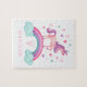Un lindo y mágico unicornio con corazones y un arco iris decora este rompecabezas. Personalízalo con su nombre. Un regalo divertido para un chica. Diseñado para ti por Blackberry Boulevard.