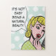 Este rompecabezas natural caprichoso del cómic de la belleza está seguro de traer una sonrisa a sus labios. El cómic inspiró características del diseño una mujer joven preciosa que aplicaba el lápiz labial rojo y una burbuja del discurso que diga, "no es el ser fácil una belleza natural." El chica y la burbuja del discurso están en el azul del huevo de un petirrojo, fondo del lunar. ¡Éste es el regalo irónico perfecto para la princesa en su vida!