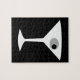Este rompecabezas de cristal Noir de Martini de la película ofrece un fondo negro y la imagen de una silueta blanca de un vidrio de martini. Dentro del vidrio es una aceituna gris gloriosa con un pimiento morrón negro. Esto es un rompecabezas de la diversión para cada uno que desee que fueran un carácter en una película clásica. ¡Sacudido no revuelto, por favor!