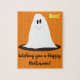 ¡Este fantasma sonriente le está deseando a todos los niños una feliz Halloween! Va a ser todo un placer y no hay trucos aquí. Gran fantasma blanco sobre el fondo naranja con una sonrisa adorable. El mensaje de abajo está en negro, y el fantasma está diciendo Boo con letras amarillas brillantes. Guarda el rompecabezas para hacer en Halloween mismo, o disfruta haciendo este rompecabezas en los días previos a la festividad para generar emoción, o después, mientras trabajas lentamente en tu colección de dulces. Diversión para los niños juntos o para toda la familia.