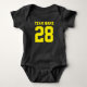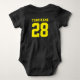 Traje para el bebé de la camiseta de fútbol. A mamá y a papá les encantan los deportes. Es natural que el bebé también. Traje para bebés en azul marino y amarillo. Puede personalizar el nombre y el número del jugador en la parte delantera y trasera de la camiseta. No sólo para los aficionados al fútbol. Todo tipo de aficionados al deporte apreciarán este diseño. Béisbol, baloncesto, fútbol, hockey sobre hielo y más.