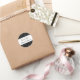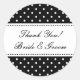 Ronda Gracias pegatinas por favores matrimoniales. Patrón de puntos de polka cúpula con texto elegante para el nombre de novia y novio. También se puede usar en selladores de sobres elegantes.