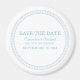 Sencillo y elegante Redondo circundante Guardar el imán de fecha con un borde de círculo geométrico en azul. Esta moda y boda moderna ahorran el diseño de la fecha es perfecto para anunciar a su boda simple y sofisticado. Fácil de personalizar, simplemente agregue los detalles de su boda en los campos de texto proporcionados. Haga clic en "Personalizar" para encontrar más opciones de personalización.
