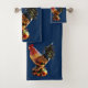 El conjunto de toallas de baño de galgas. Se muestra con fondo azul oscuro opcional o se selecciona blanco.
