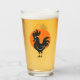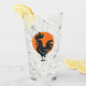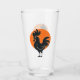 Un gallo negro, personalizado, se coloca sobre un sol brillante y rojo-naranja en este vaso de agua. Agradable, divertido, campestre y perfecto para los que disfrutan de los pollos.