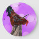 Rooster, Clock, Featured on a un color rosa púrpura es un Rooster en una valla mirando hacia abajo, https://www.zazzle.com.au/naturalcauses