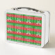 Patrón de punto en un estilo de suéter feo con campanas de jingle y texto de Feliz Navidad