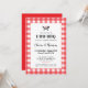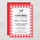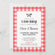 Celebra a la pareja comprometida con esta invitación de la fiesta I Do BBQ que incluye una visión alegre del clásico, rojo, de manta de picnic gingham plaid y un pequeño detalle de herramientas de parrilladas con corazón. Personalice el texto para que se ajuste a los detalles de su fiesta con cuadros de texto flexibles o cambie aún más el diseño utilizando el vínculo adicional personalizar.